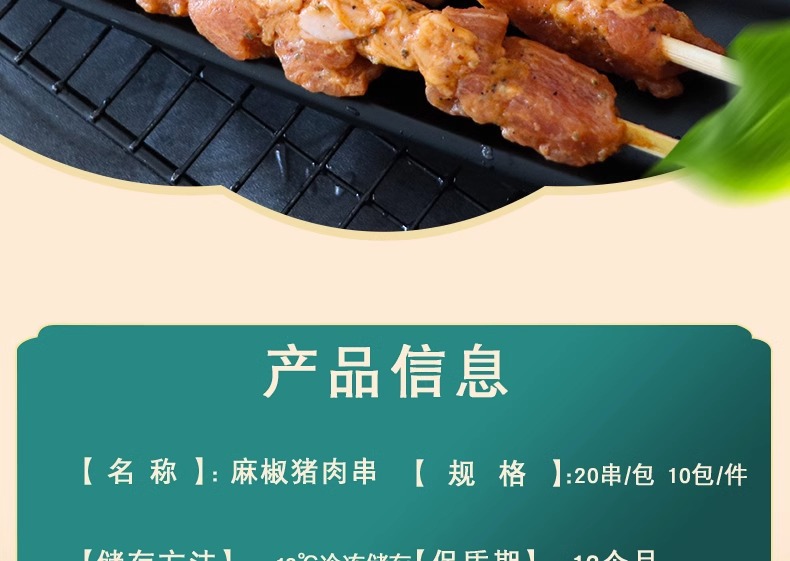 商品名称:润佳塬麻椒猪肉串调理猪肉串新鲜烧烤油炸烤肉串食材半成品20串