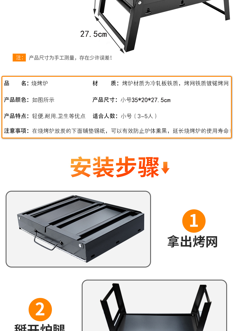 户外烧烤架 家用木炭烤炉 便携可折叠碳烤架