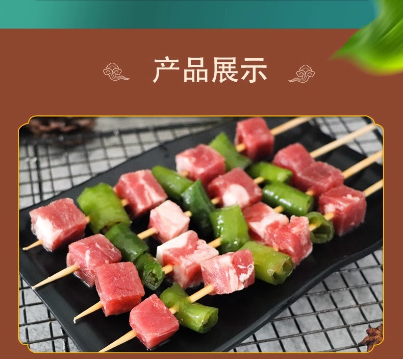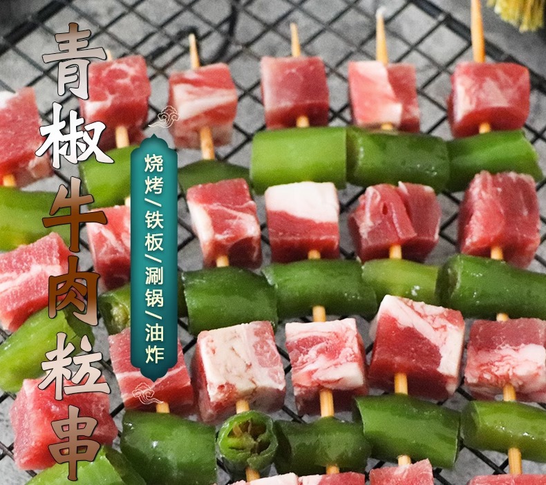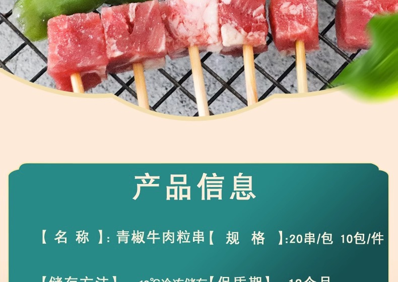 商品名称:邑笑福青椒牛肉粒串烧烤复合牛肉串油炸冷冻半成品食材烤肉串20串