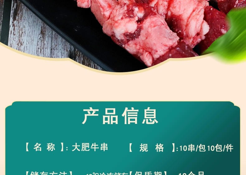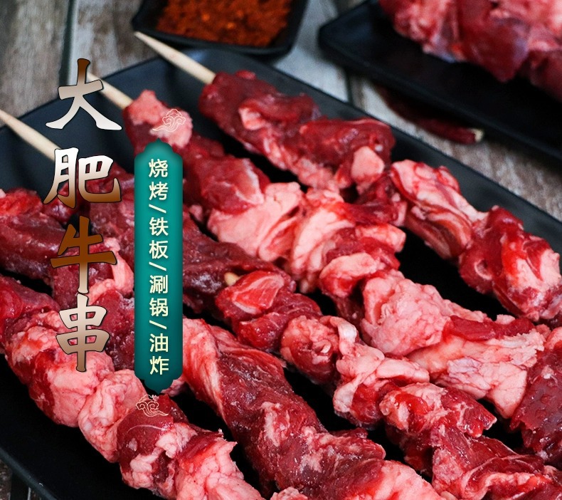 商品名称:100g大肥牛串新鲜纯牛肉大串户外烧烤食材烤牛肉串商用油炸烤肉串